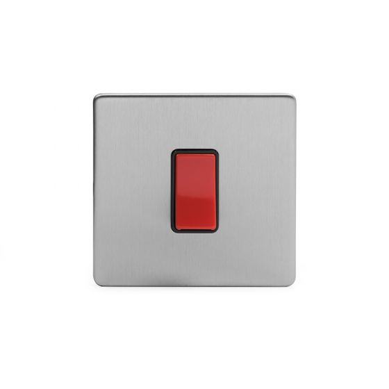 Socket and switch finishes are an important consideration for interior design and styling and should be chosen to match their surroundings. If you have brushed chrome finishes in your kitchen (unit handles/appliances) or bathroom (towel rails etc), then this Brushed Chrome 45A 1 Gang Double Pole Switch, Single Plate will provide the perfect compliment. They work particularly well in modern and contemporary spaces and high traffic areas or for young families.