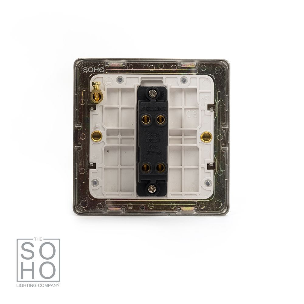 Brushed Chrome and Satin Chrome/Steel finishes are often indistinguishable, though some believe that a satin finish is a little milkier. Either way, the brushed/satin finish on this Brushed Chrome 10A 1 Gang Intermediate Switch diminishes light reflection and leaves a subtle lustre and sheen. The Lombard collection's distinctive appearance and stylish screwless finish provides a warmer tone than polished chrome and has the added benefit of hiding fingerprints and small blemishes.