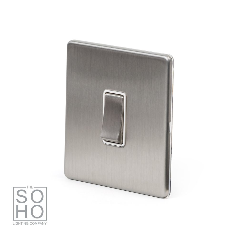 The Lombard Collection Brushed Chrome 1 Gang Intermediate Switch White Ins 10A Screwless