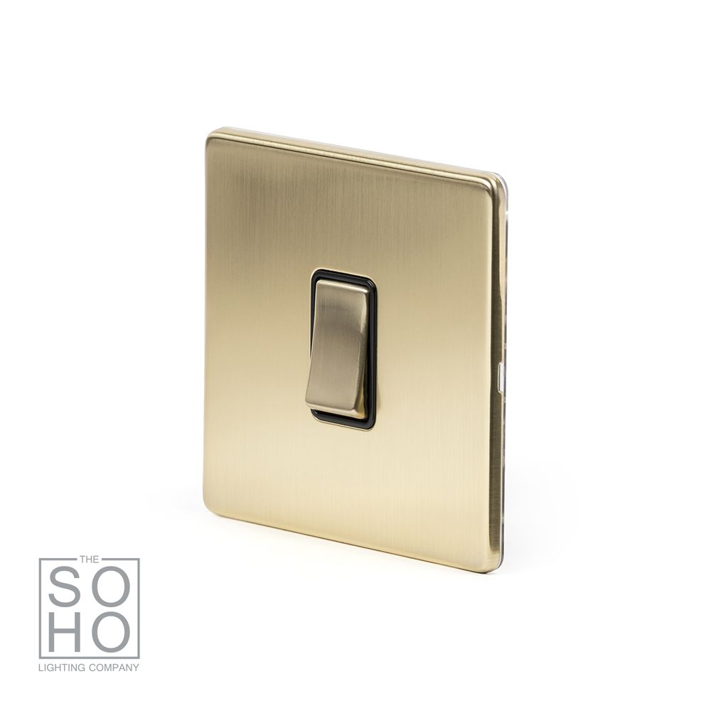The Savoy Collection Brushed Brass 1 Gang 20A Double Pole Switch Blk Ins Screwless