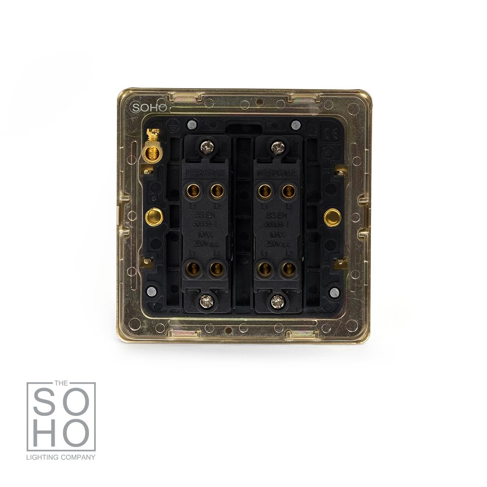 The Savoy Collection Brushed Brass 2 Gang Intermediate Switch Black Ins 10A Screwless