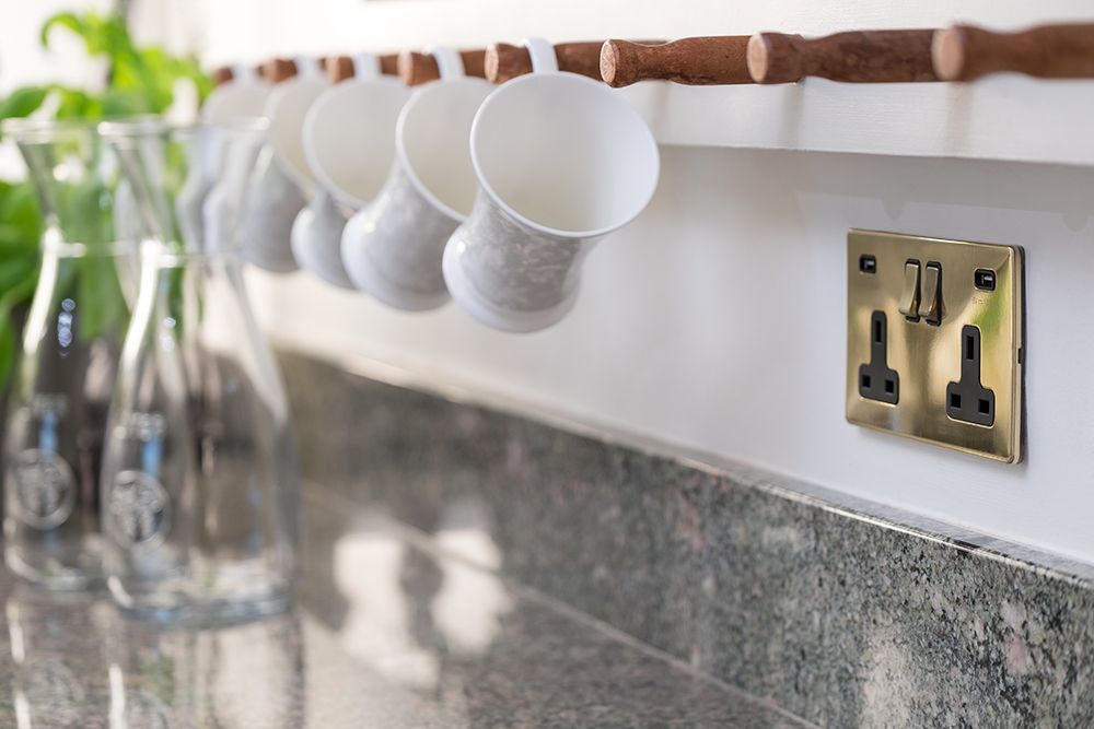 Socket and switch finishes are an important consideration for interior design and styling and should be chosen to match their surroundings. If you have brushed or polished brass finishes in your kitchen (unit handles/appliances) or bathroom (towel rails etc), then The Savoy Collection will provide the perfect complement.