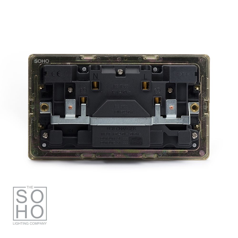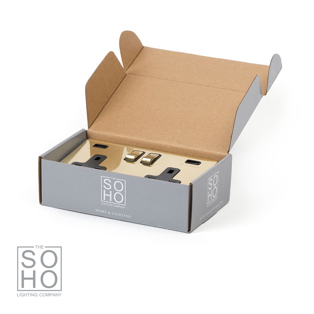 The Savoy Collection Brushed Brass 2 Gang 13A SP Socket with 2 x USB-A 3.1A