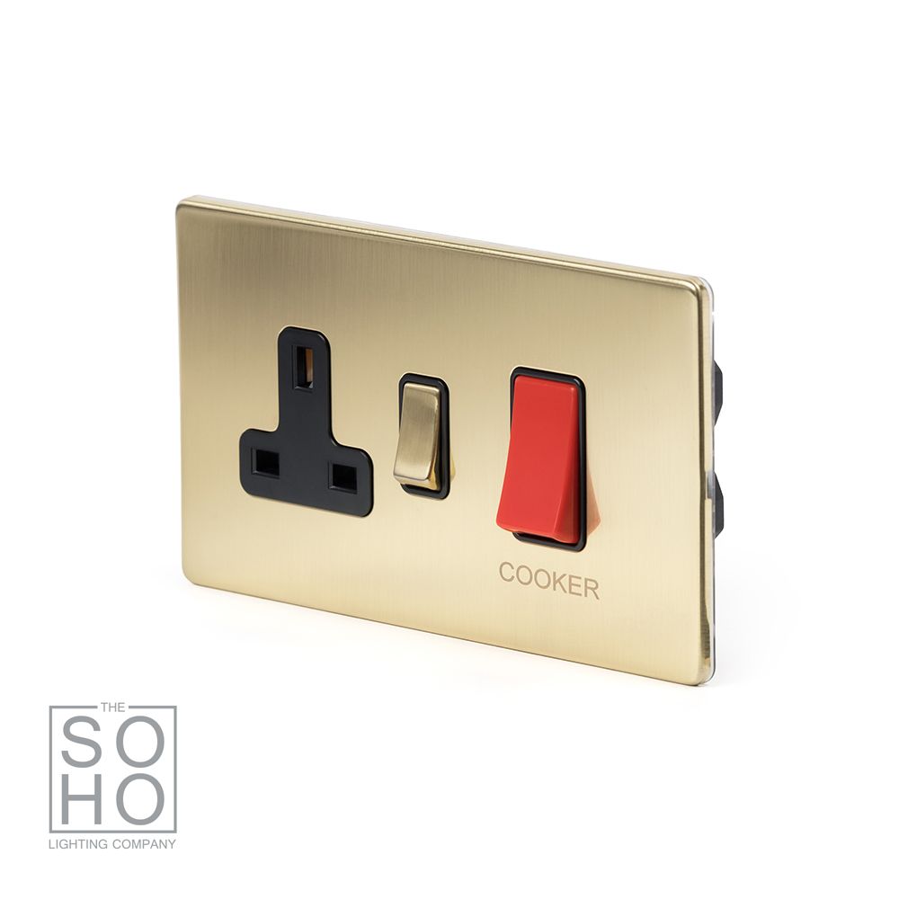 The Savoy Collection Brushed Brass 45A Cooker Control Unit Blk Ins Screwless
